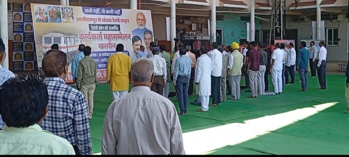 खरगोन । आदित्य विद्या विहार स्कूल में ताप्ति नर्मदा रेलवे लाइन समिति निमाड़ क्षेत्र मध्यप्रदेश द्वारा एक महत्वपूर्ण महासम्मेलन का आयोजन किया गया। यह सम्मेलन अलीराजपुर से खंडवा रेलवे लाइन की मांग को लेकर आयोजित किया गया था, जिसमें बड़ी संख्या में कार्यकर्ताओं और स्थानीय लोगों ने भाग लिया।