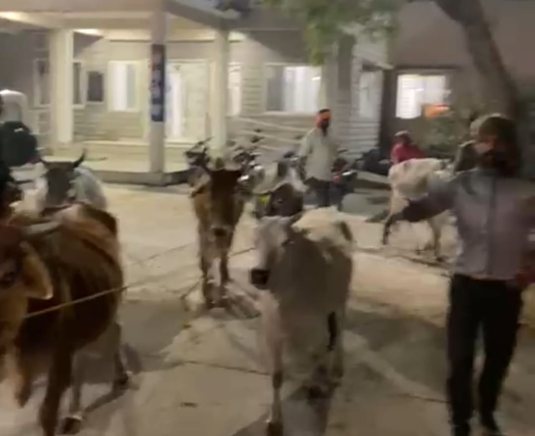 घेराबंदी की तैयार कर रखी थी। जैसे ही आष्टा की ओर से डाक पार्सल लिखा हुआ कंटेनर दिखाई दिया वैसे ही उसे रोका गया, उसे चेक करने पर दो बैल, तथा सात गाएं थीं, कंटेनर चालक के पास कोई वैध दस्तावेज भी नहीं पाए गए , पुलिस ने बिना नंबर के कंटेनर को जब्त कर दो आरोपी इरशाद पिता इस्माइल , शब्बीर पिता हनीफ दोनों निवासी सारंगपुर जिला रायगढ़ को गोवंश अधिनियम के तहत गिरफ्तार कर पूछताछ शुरू की, उक्त गोवंश को समीप ही कृष्णा गौशाला सोनखेड़ी में छोड़ा गया, इस कार्य में थाना प्रभारी तहजीब काजी, बजरंग दल जिला प्रमुख जितेंद्र सोलंकी, मनोज मानधन्या, विशाल देवड़ा गब्बर परमार तथा रोहित झांझोट तथा