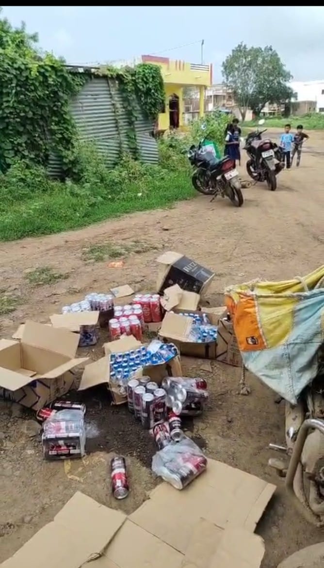 आज आभापुरी के ग्रामीणों ने दारू से ओवर लोड मोटर साइकिल को रोका, चौक मे चारो तरफ दारू ही दारू